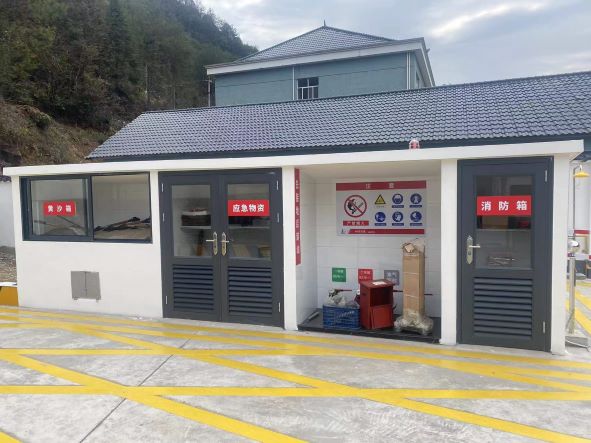 2、卸油臺(tái)更換為中石化標(biāo)準(zhǔn)卸油消防應(yīng)急器材箱,位于罐區(qū)東面。